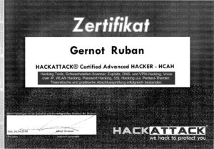 Geschult und geprüft in der Anwendung von Penetration Testing Methoden und Tools: Hacking Tools, Schwachstellen-Scanner, Wirkung und Anwendung von Exploits, DNS- und VPN-Hacking, Voice-over-IP, WLAN Hacking, SSL Hacking und viele andere Pentest-Themen.